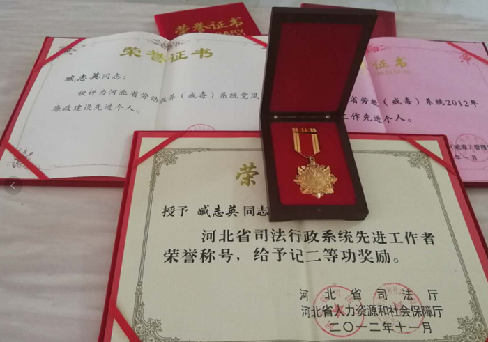 一个人经历的艰辛和困难越多,人生就越丰满、越坚强、越充实。作为戒毒人民警察,从事警察这份职业,选择吃苦也就选择了收获,选择奉献也就选择了高尚。 2016年2月臧志英同志被省戒毒管理局授予2015年“双强”活动先进个人称号并记个人三等功,2016年5月被省戒毒管理授予2015年度全省司法行政戒毒工作先进个人称号。