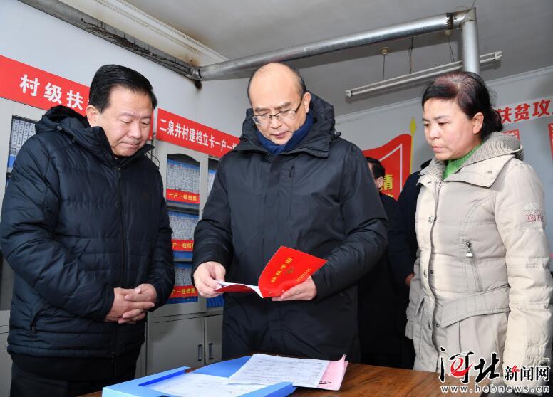 12月1日至2日,省长许勤在张家口市调研脱贫攻坚工作。这是许勤深入张北县二泉井村村委会,检查扶贫档案和整改台账。记者孟宇光摄